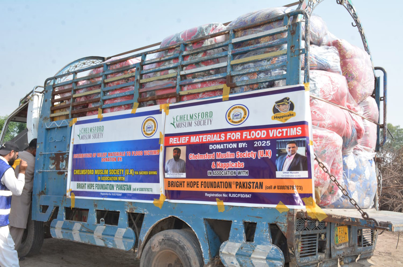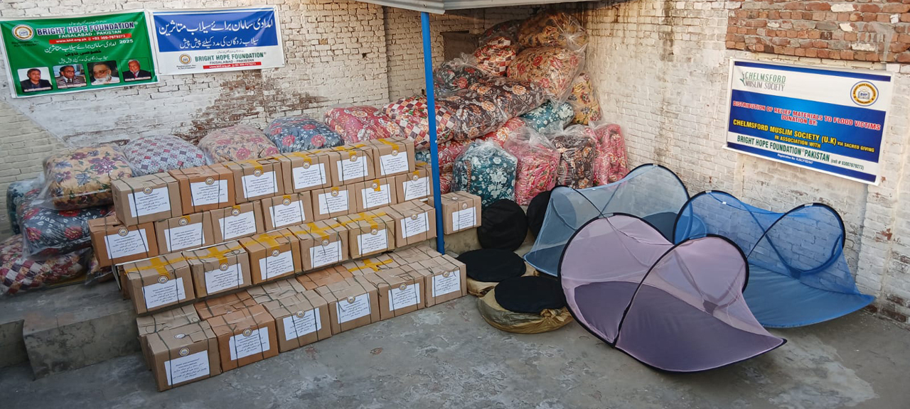 Alhamdulillah! By the Grace of Allah Almighty, on September 27th, 2025, the 2nd truck carrying ration packs, mosquito nets, quilts, sheets, and apparel was prepared by Bright Hope Foundation, Faisalabad, Pakistan, for the flood victims. This aid was sponsored by the Chelmsford Muslim Society U.k, and special prayers were offered for them afterwards. InshaAllah, the aid will reach the flood victims by tomorrow morning. May Allah ease their hardships and grant them the strength to overcome these difficult times.