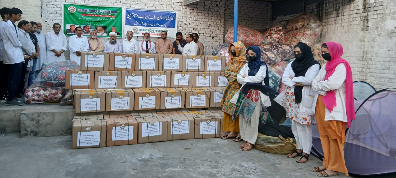 Alhamdulillah, on “28th September 2025”, Bright Hope Foundation carried out a successful relief distribution among flood-affected families. Essential items including food ration packs, mosquito nets, quilts, pallets, apparels, and other supplies were provided to those in need. The recipients expressed their gratitude with heartfelt prayers, bringing immense joy and comfort to all present.